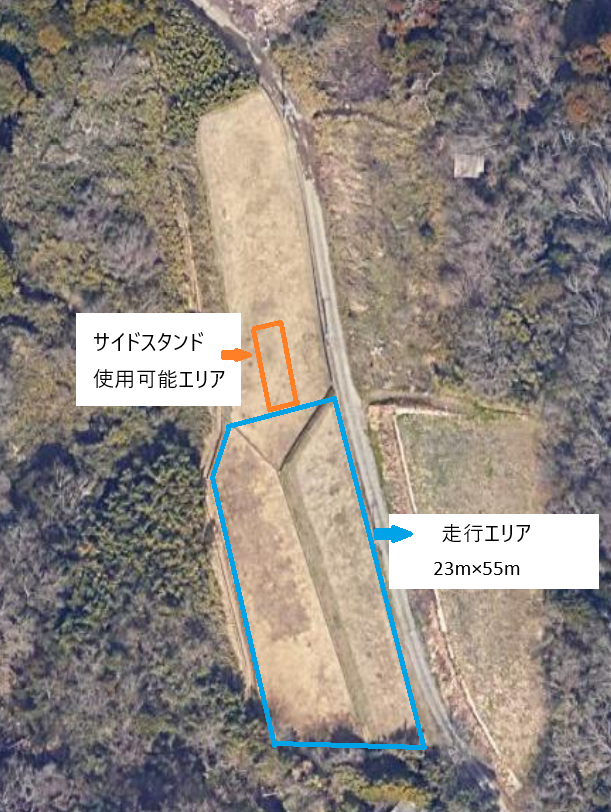 ・練習場敷地の南側、西側に水路があります。水路底まで2mほどの段差があり、保護用のフェンスは設置していますが、突き破って転落されると重症、死亡に至る事故となる可能性があります。特に水路付近でのスピードの出し過ぎにはご注意下さい!水路転落によってお客様が負ったあらゆる損害について、弊社は責任を負いません。安全第一でご利用下さい。